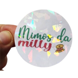 O holográfico é um adesivo com efeito visual mutável, que reflete cores diferentes conforme o ângulo da luz. É um material que chama muita atenção e passa sensação de modernidade, destaque e impacto visual.