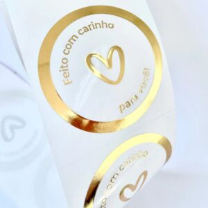O adesivo metalizado é produzido em um material com brilho metálico, que traz uma aparência sofisticada e diferenciada. Ele costuma ser muito escolhido por marcas que querem transmitir elegância, valor agregado e acabamento premium.