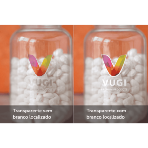 | Transparente + Branco Localizado | transparência com áreas opacas | alta | alto | 2 ou 3 págs |