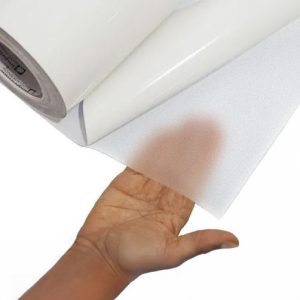 É a folha de apoio onde o adesivo fica colado até o momento da aplicação. Normalmente essa base é branca.
