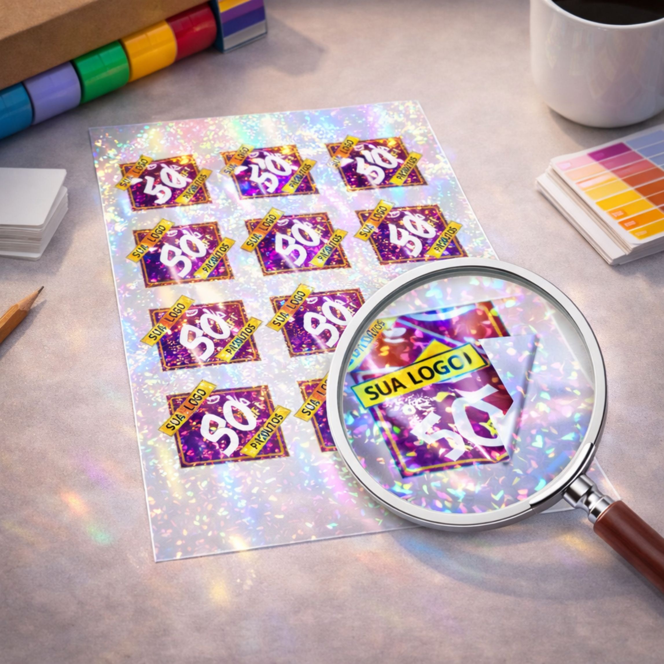 Nossa impressão é realizada em equipamentos digitais de alta resolução, garantindo cores vibrantes, ótima definição de detalhes e excelente fidelidade à arte enviada. Isso permite produzir desde adesivos simples até materiais com acabamento premium para marcas que desejam se destacar.