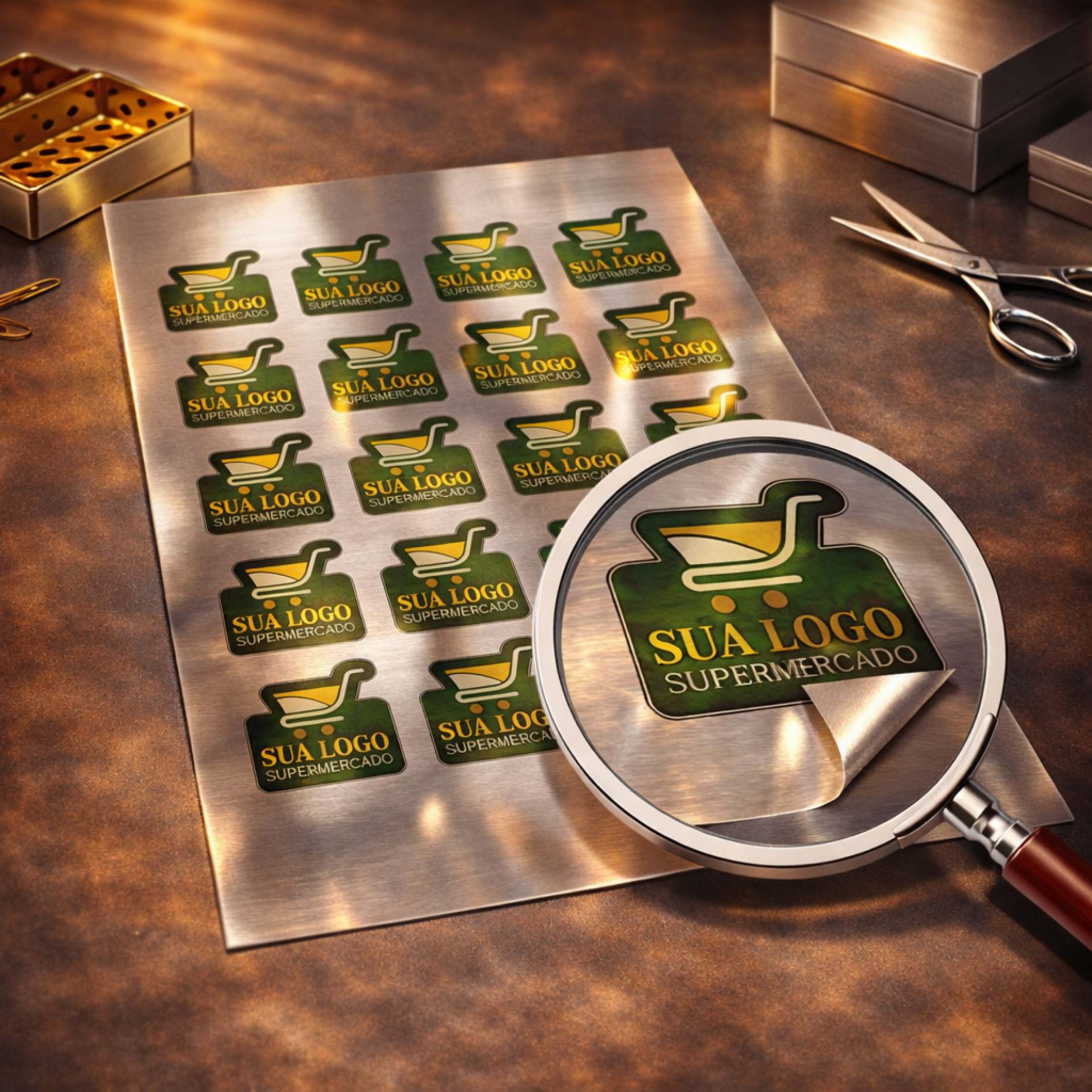• Adesivo Metalizado A3 – adesivos produzidos em folha A3 com material metalizado, ideais para etiquetas, lacres e aplicações que exigem destaque visual com efeito metálico elegante.