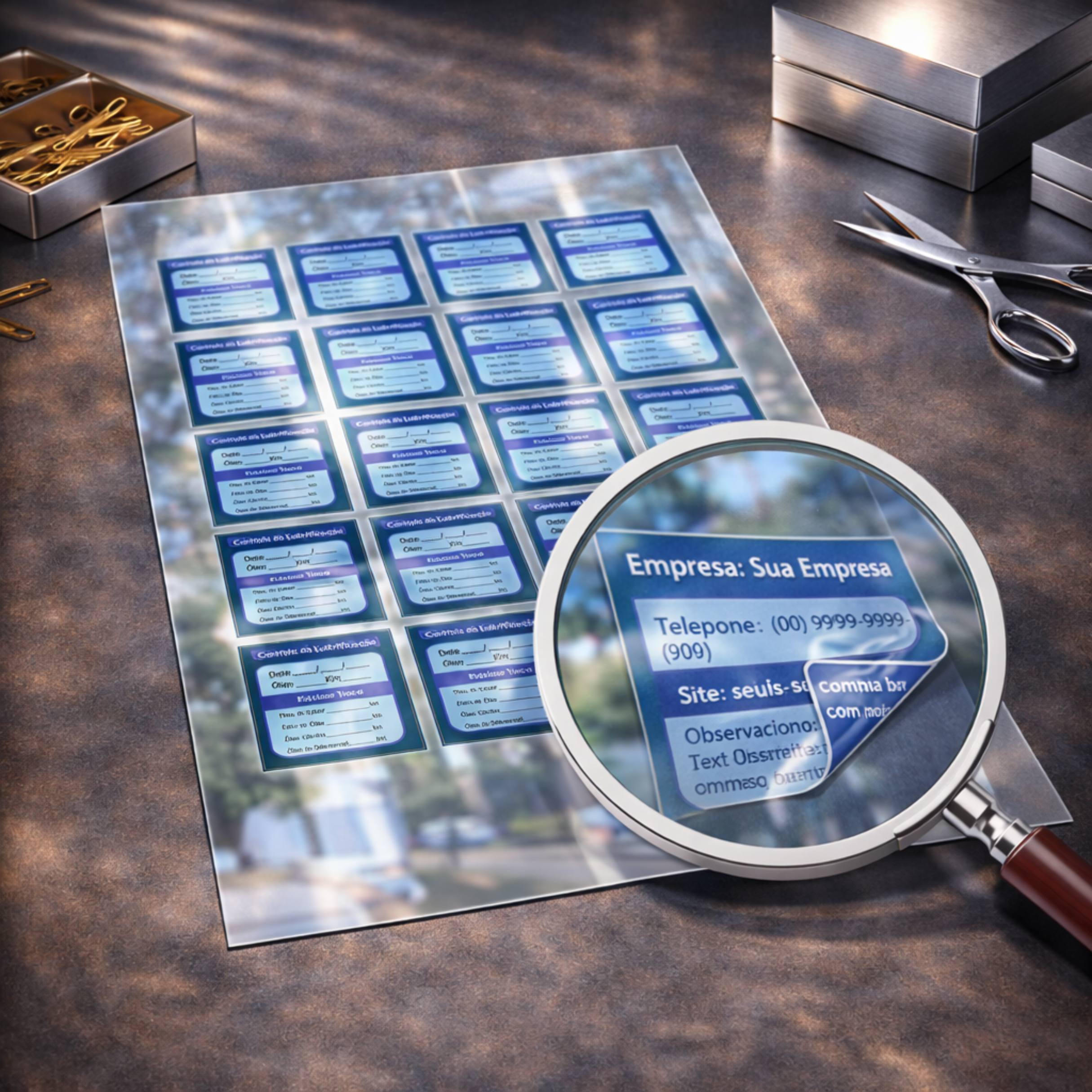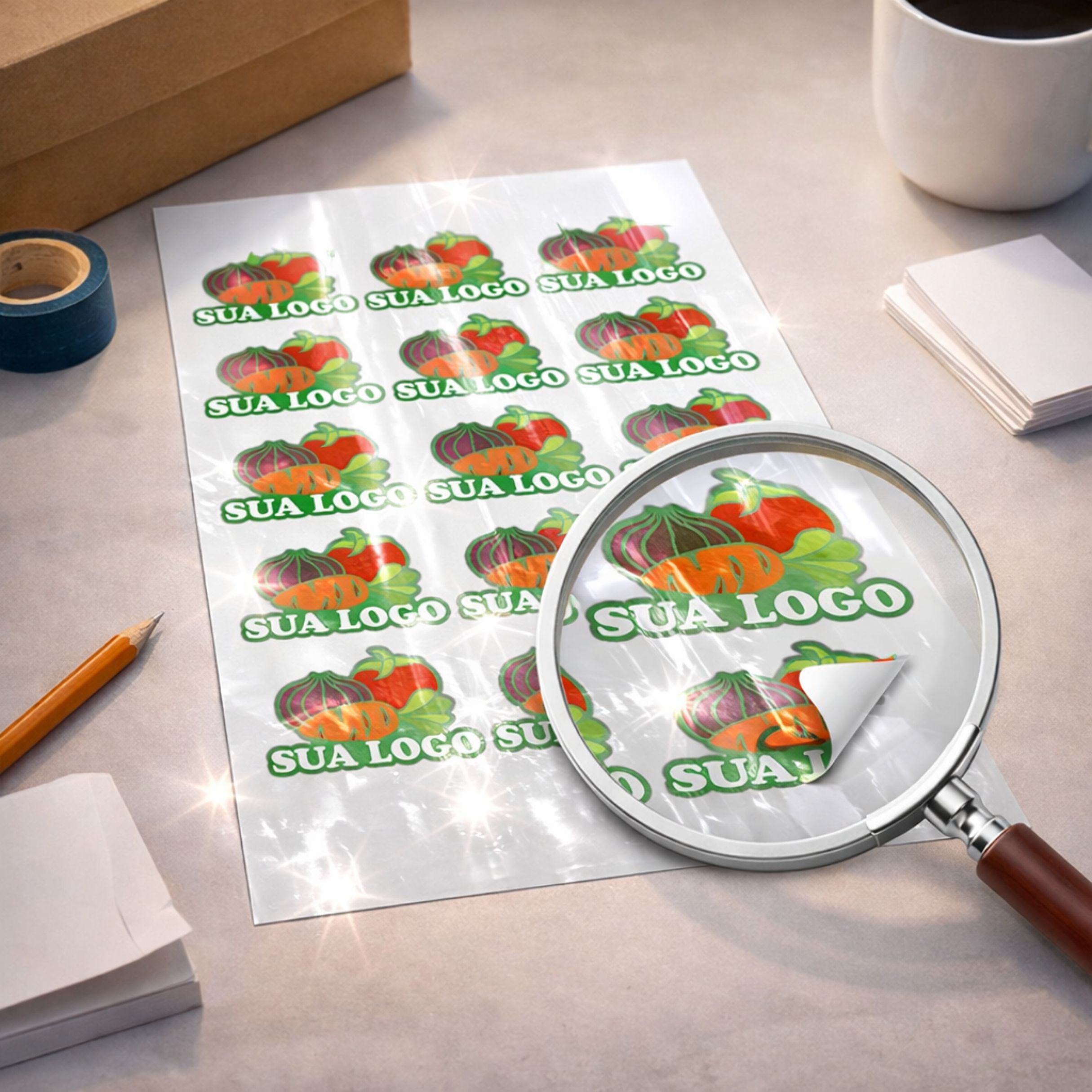 • Adesivo Transparente – perfeito para aplicações discretas ou sobre superfícies visíveis, permitindo que o fundo apareça através da impressão.