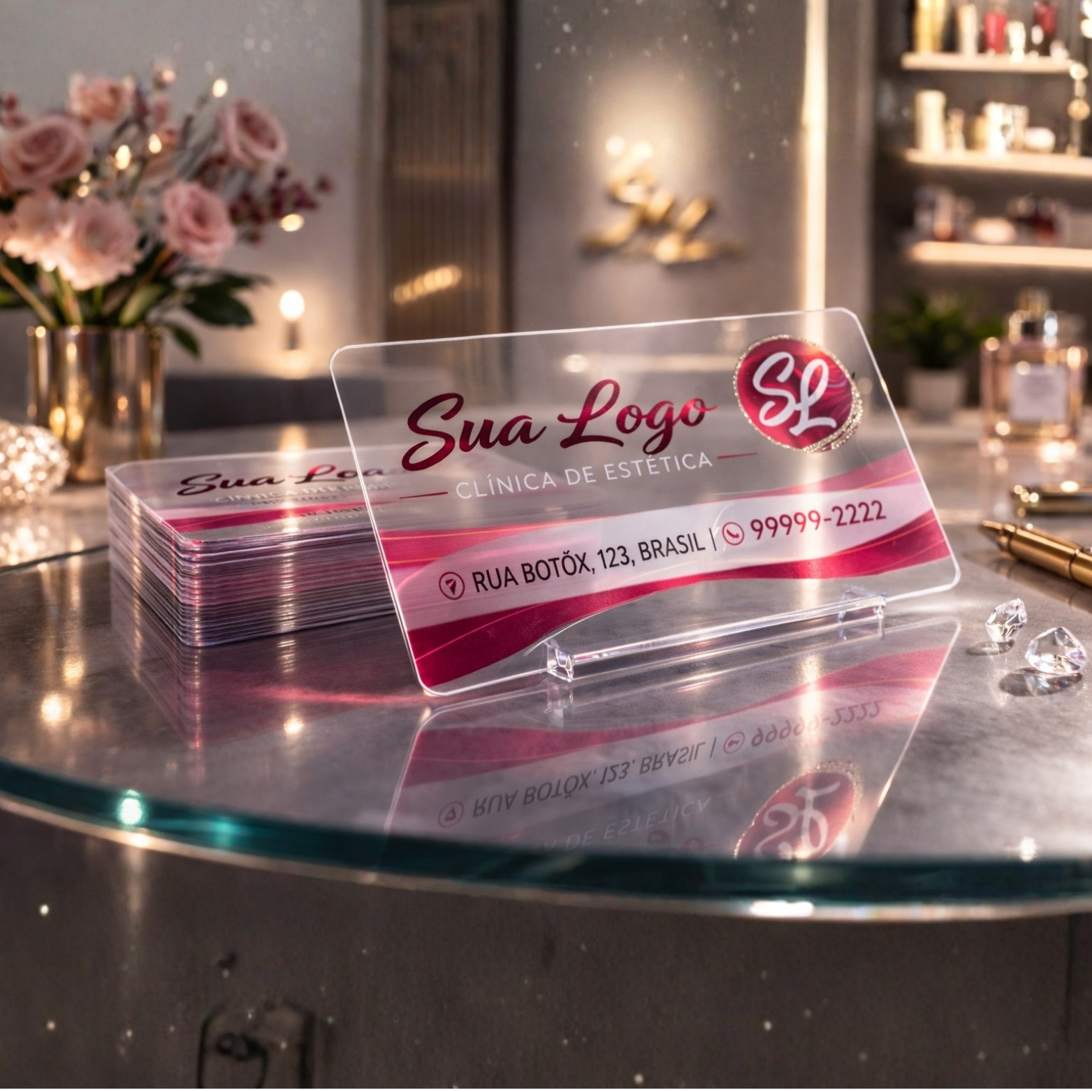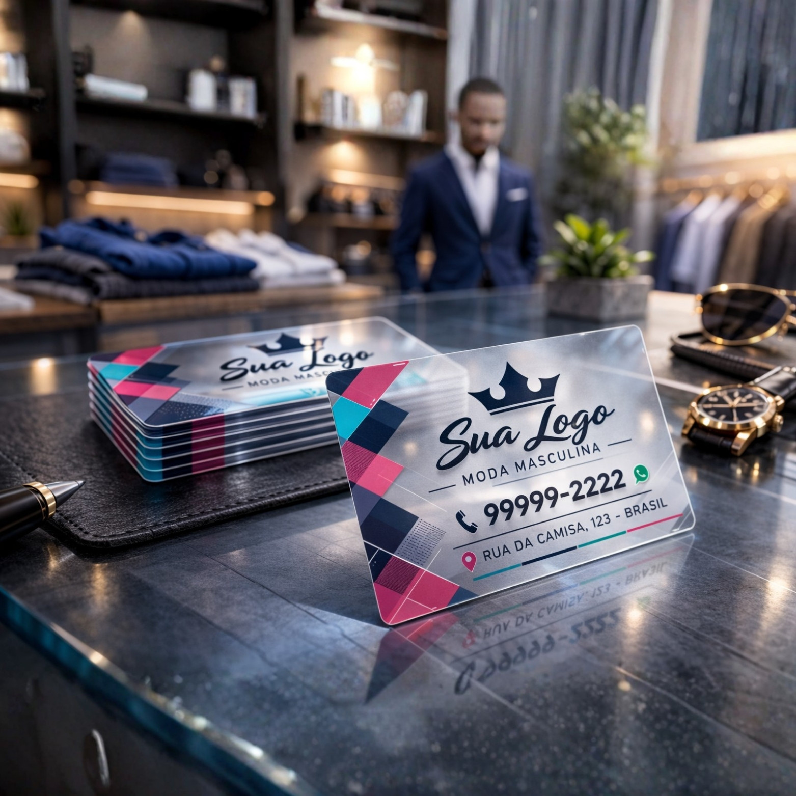 • Estilo clean e moderno. Visualmente inovador, como um “cartão de vidro”.