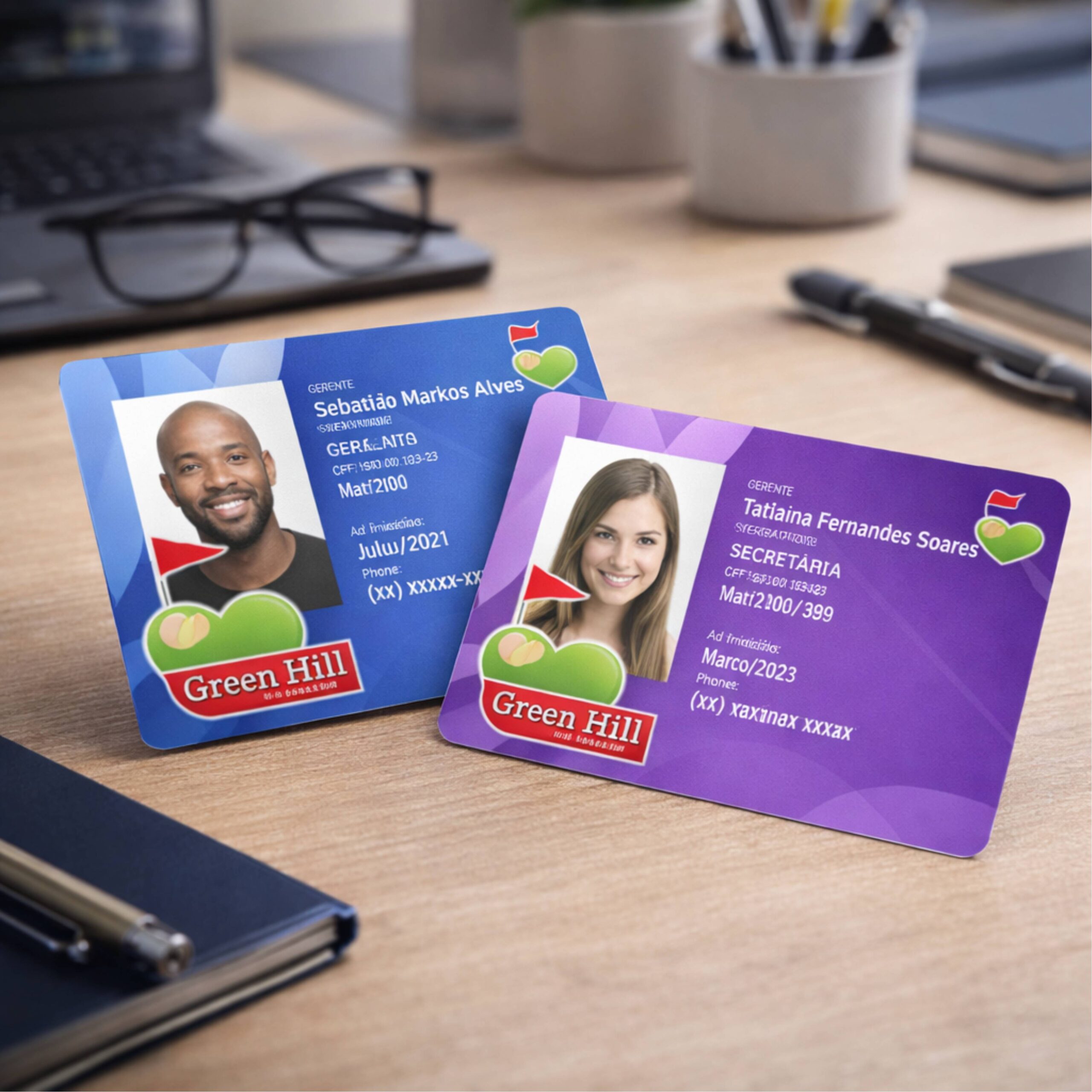 O diferencial da arte única é permitir que cada carteirinha possua informações exclusivas, como nome, foto, número de matrícula, código de barras, QR Code, sem perder o padrão visual da identidade da instituição.