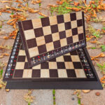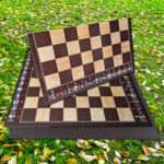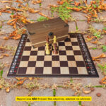 Este tabuleiro exclusivo une design sofisticado, história viva e praticidade premium. Dobrável, com acabamento brilhante em jacarandá e bege, e feltro em toda a base, ele é ideal para quem valoriza estilo, conforto e tradição.