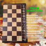 Este tabuleiro exclusivo une design sofisticado, história viva e praticidade premium. Dobrável, com acabamento brilhante em jacarandá e bege, e feltro em toda a base, ele é ideal para quem valoriza estilo, conforto e tradição.