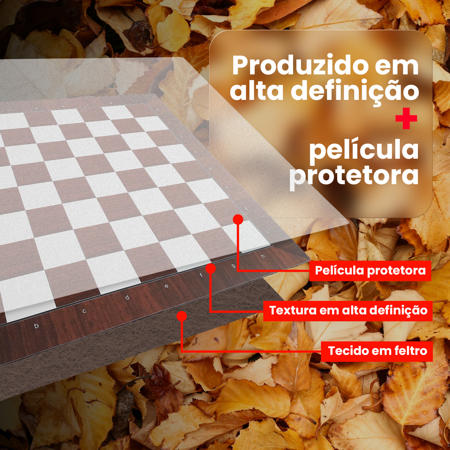 Nossos tabuleiros de xadrez são confeccionados nos mais altos padrões do mercado.