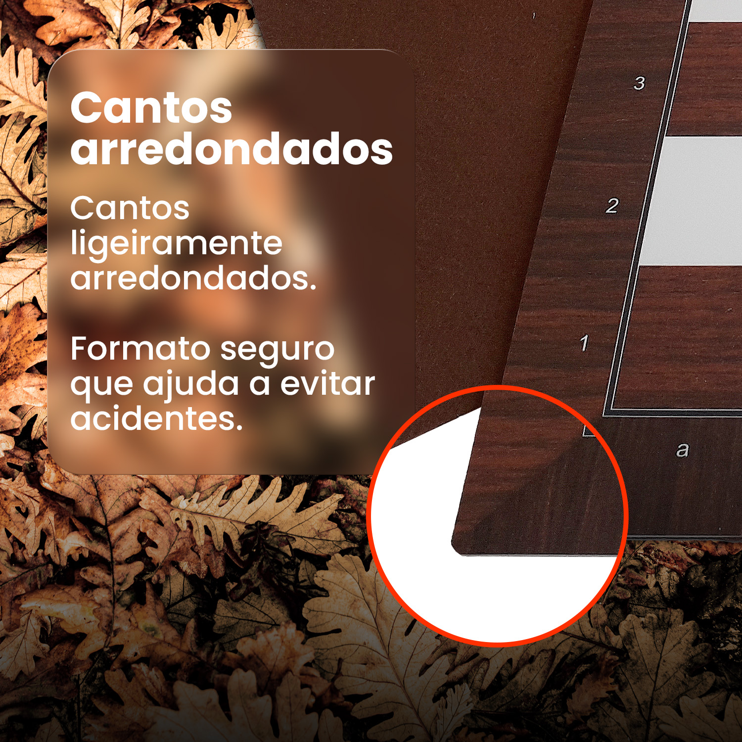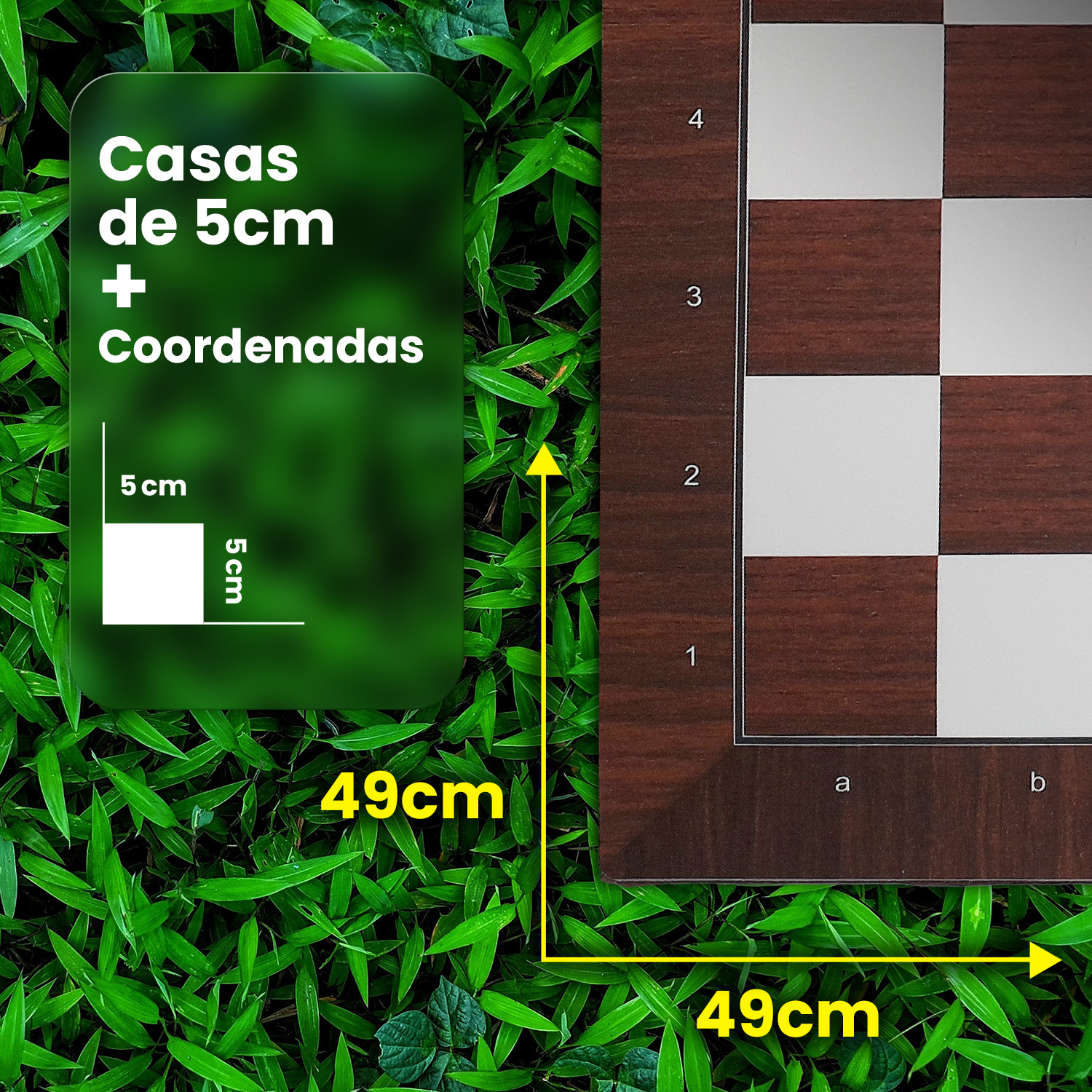 (A medida total de 49×49 cm é aproximada e pode variar, tanto para mais quanto para menos, em função do corte do PS e individualização dos tabuleiros no setor de produção, porém, sem prejudicar o tamanho das casas)